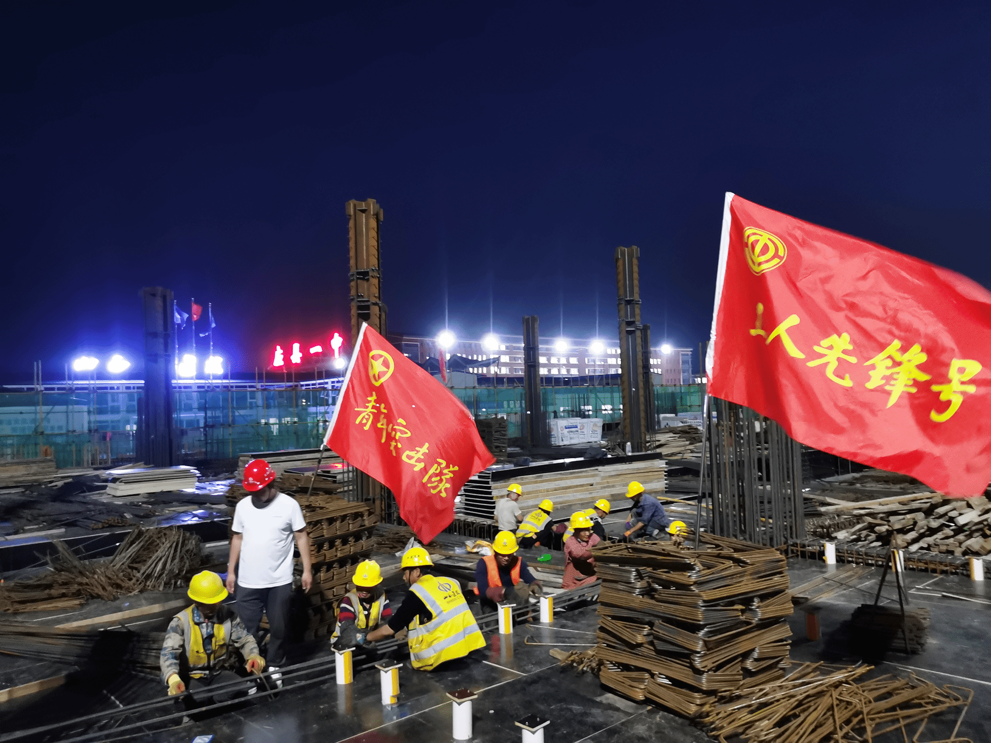 夜幕降临,应县全民健身中心建设项目的施工现场仍旧灯火通明,项目管理人员与工人们日夜奋战,力保工程进度得以顺利推进。现场的青年突击队队员们持续攻克施工难题,轮流把控钢筋绑扎安装、混凝土浇筑、钢结构施工等各项工序,保证各环节紧密相连、各项工序一次成功。项目部的全体管理人员展现出极高的专业性和强烈的责任心,提前筹划后续的装饰装修以及设备安装工作,确保项目整体高效、高质量地推进,旨在为应县打造一座现代化的全民健身中心。