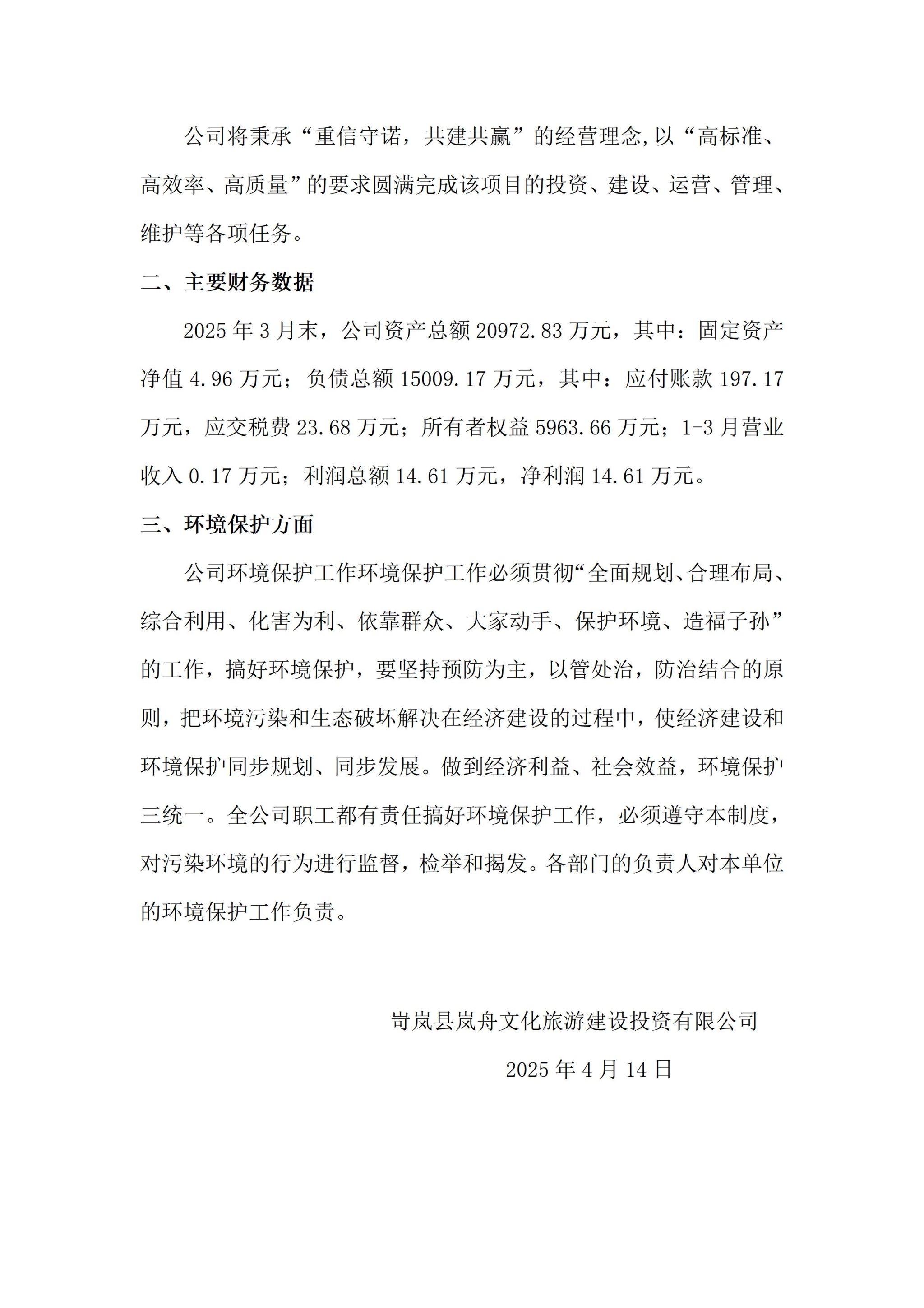 岢岚县岚舟文化旅游建设投资有限公司2025年第一季度企业重大信息公开