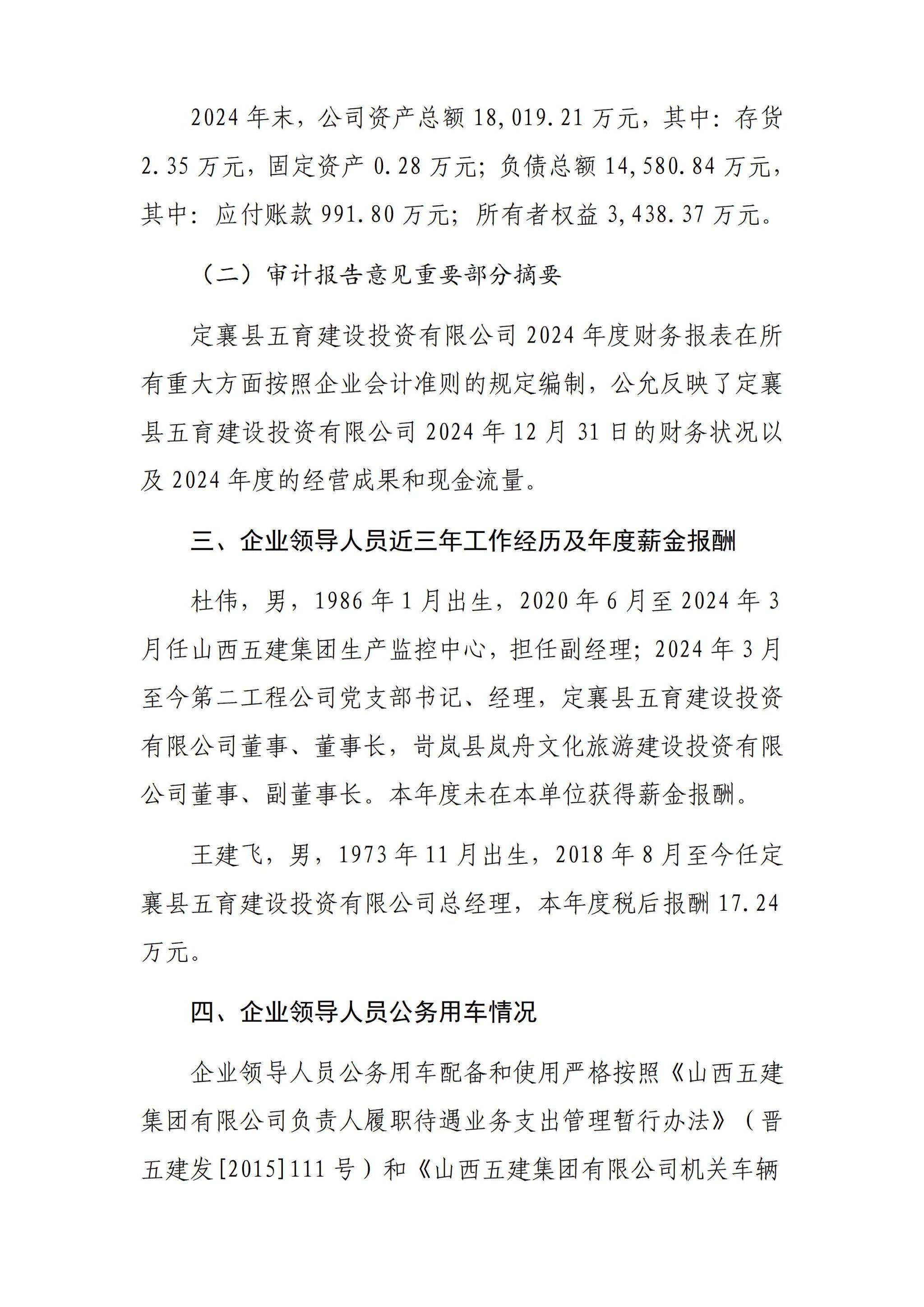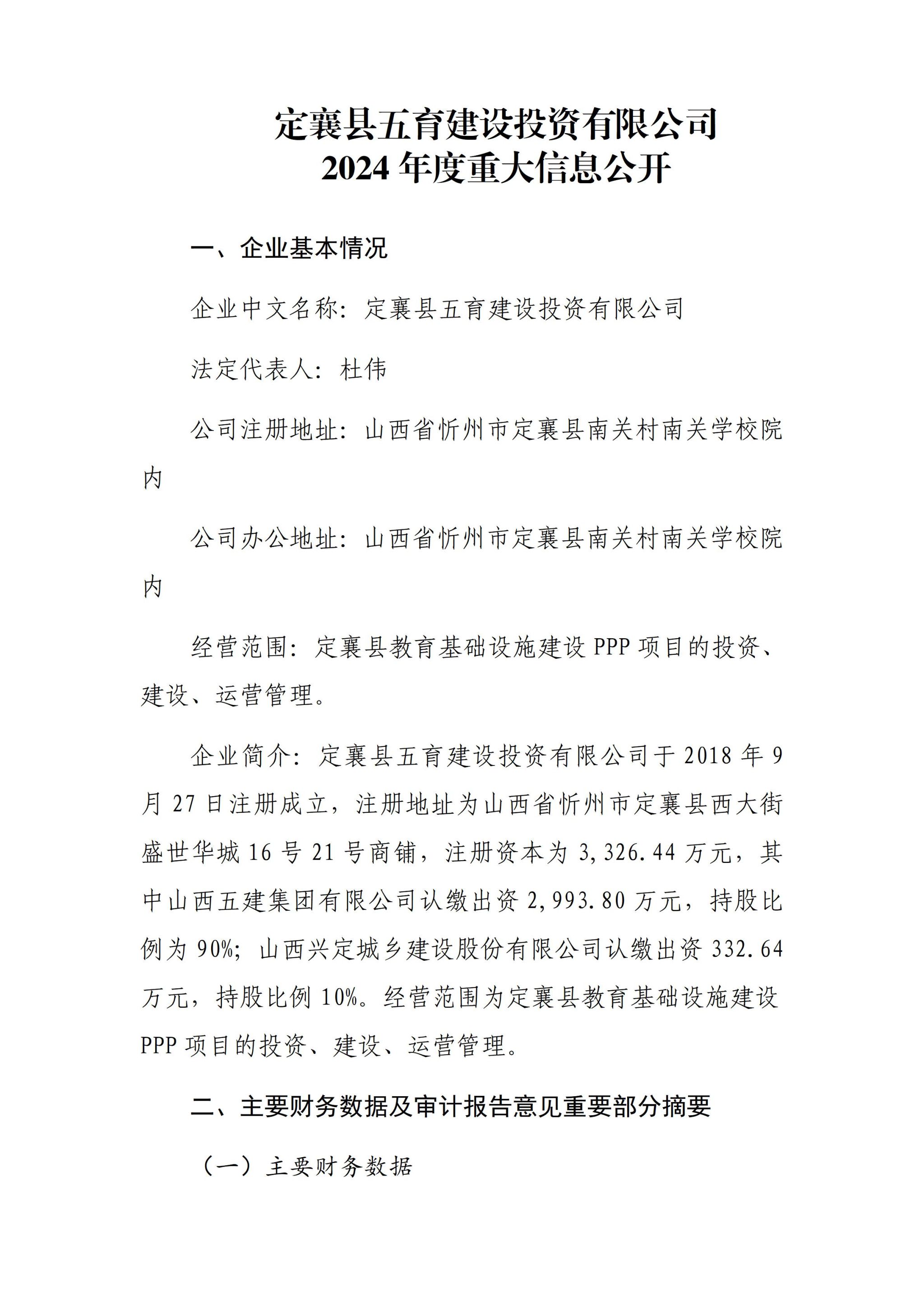 定襄县五育建设投资有限公司2024年度企业重大信息公开