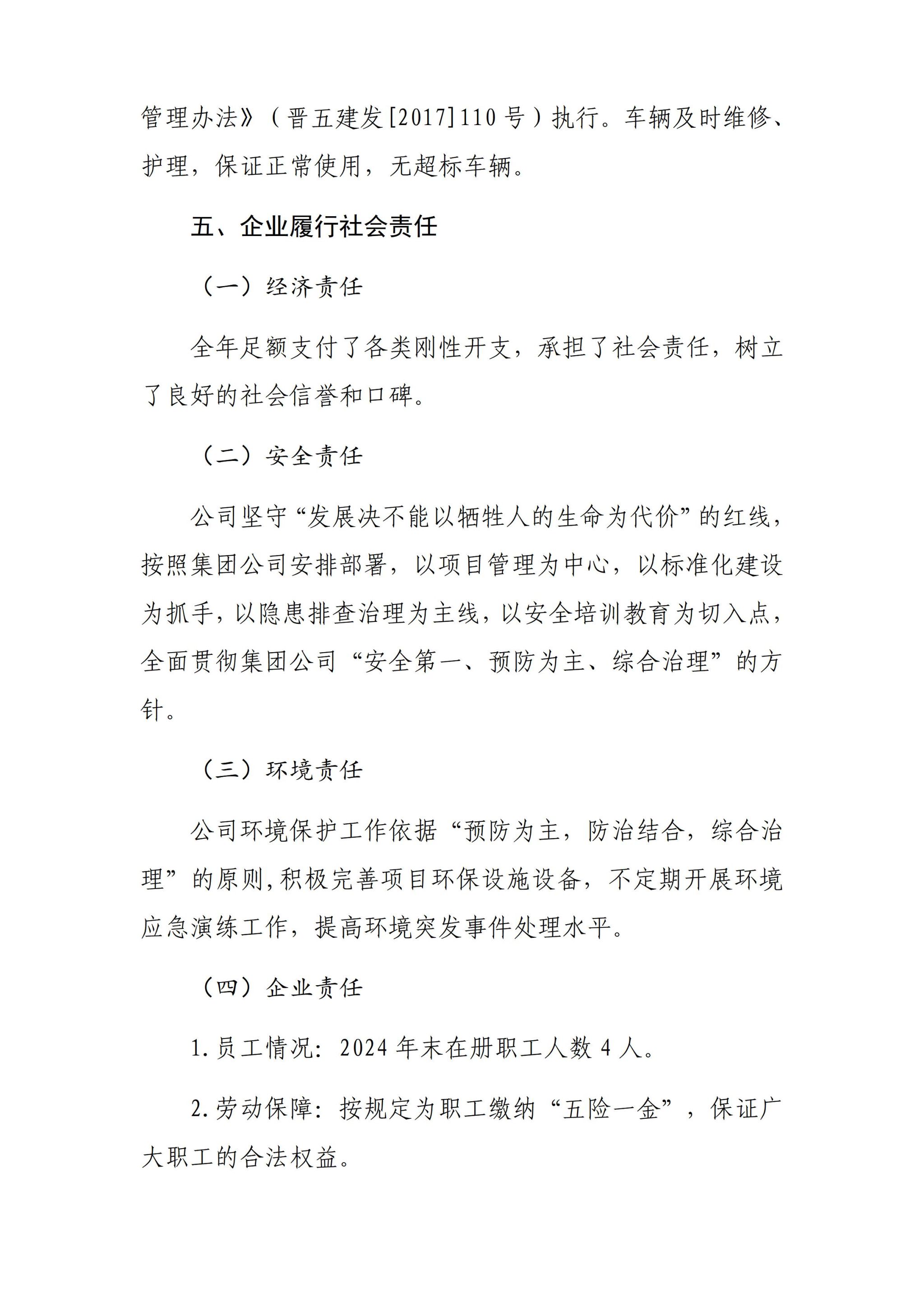汾阳五城环保建设投资有限公司2024年度企业重大信息公开