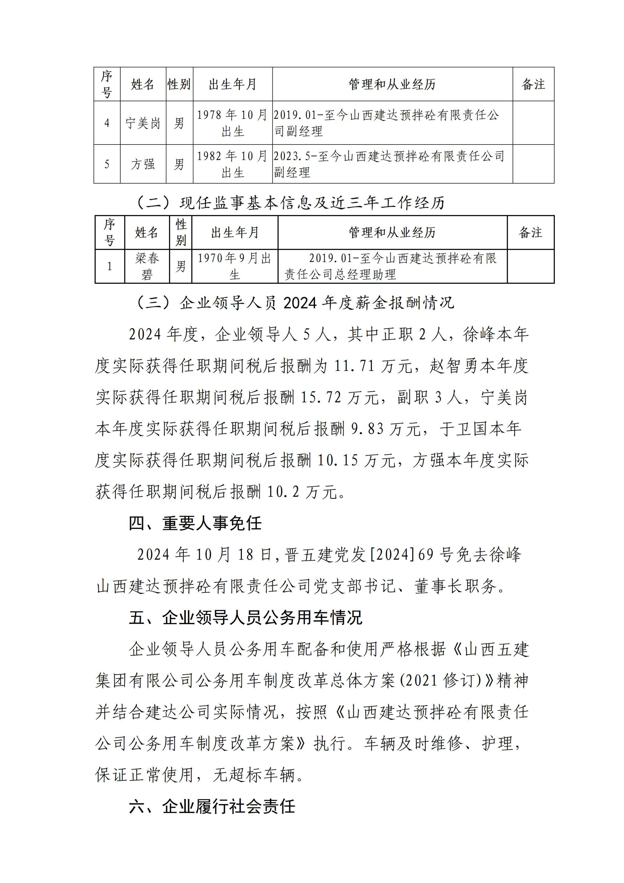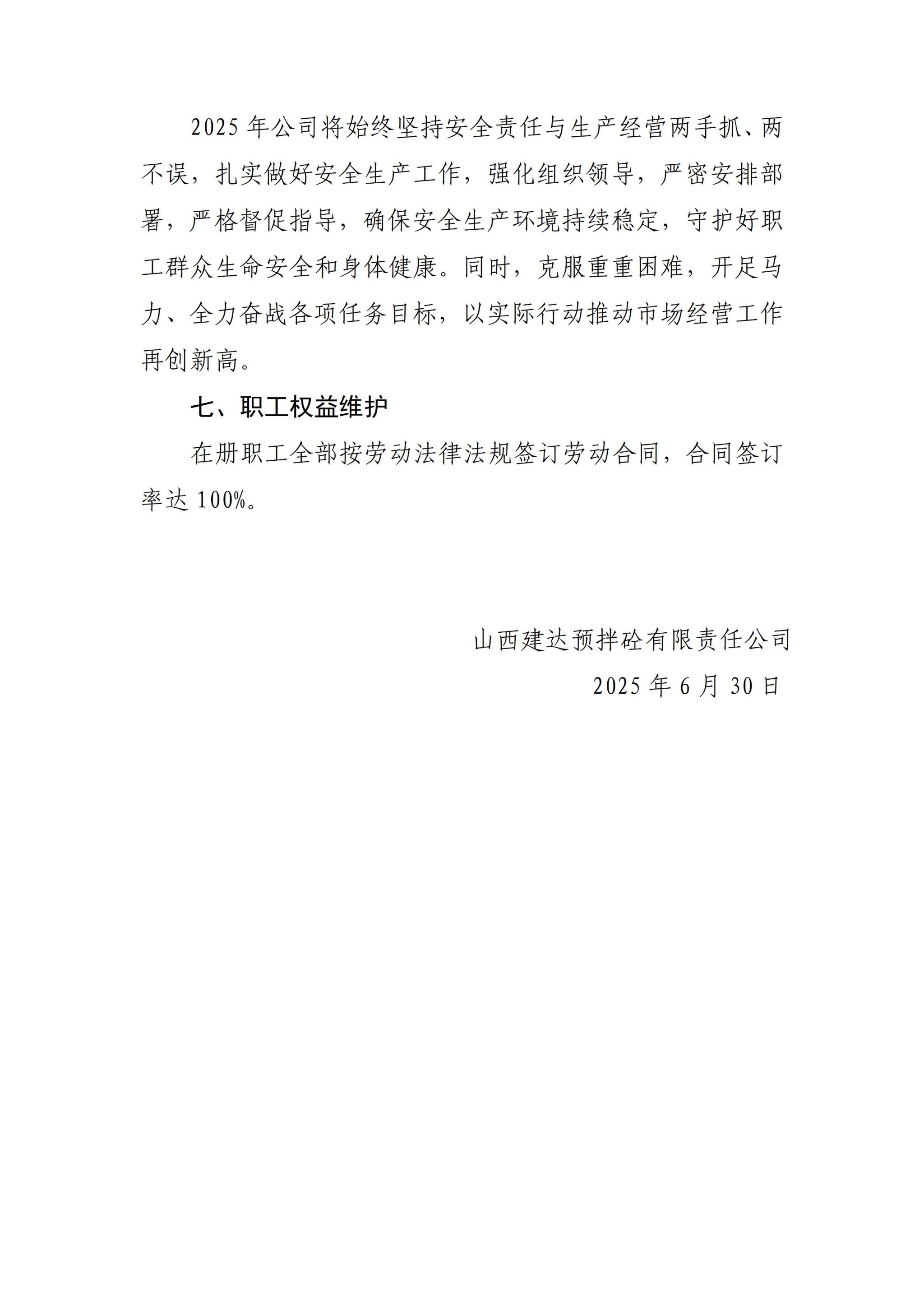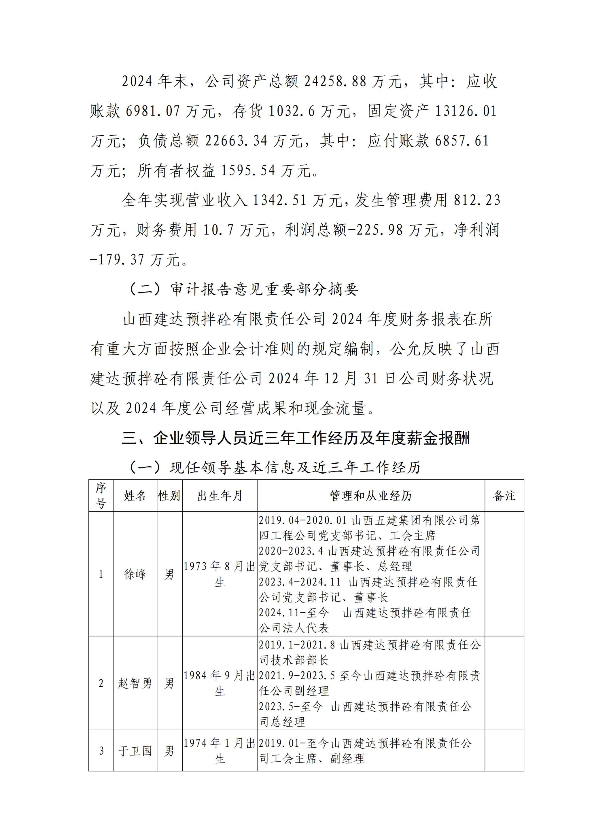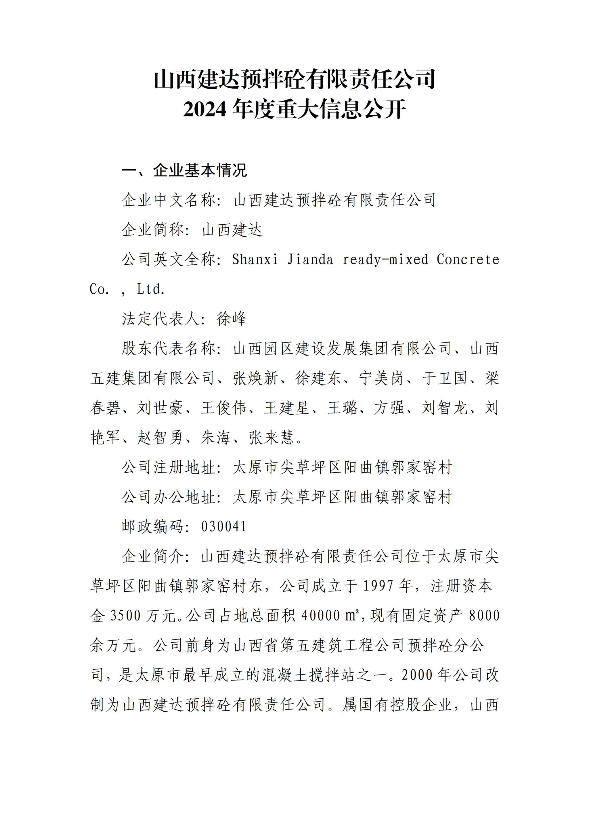 山西建达预拌砼有限责任公司2024年度企业重大信息公开