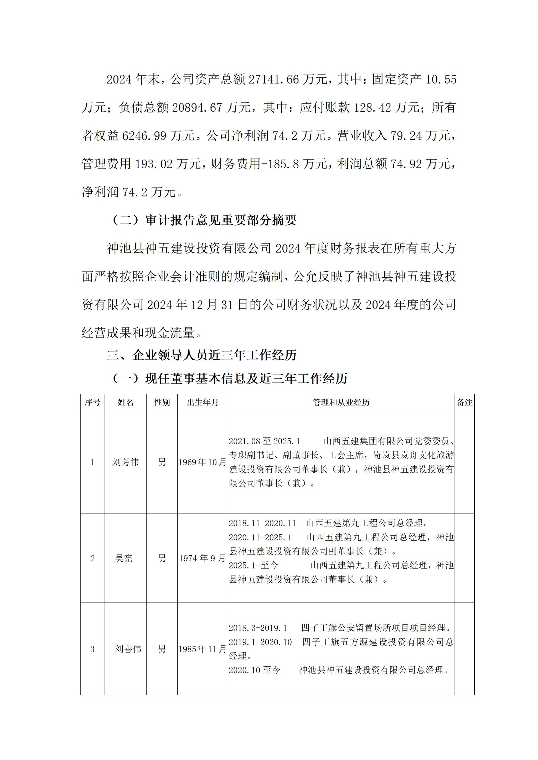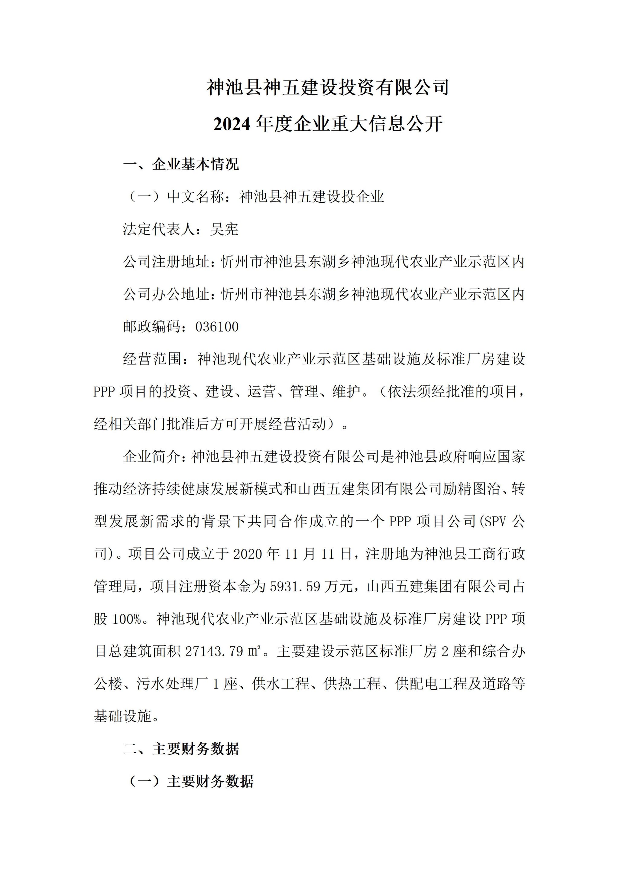 神池县神五建设投资有限公司2024年度企业重大信息公开