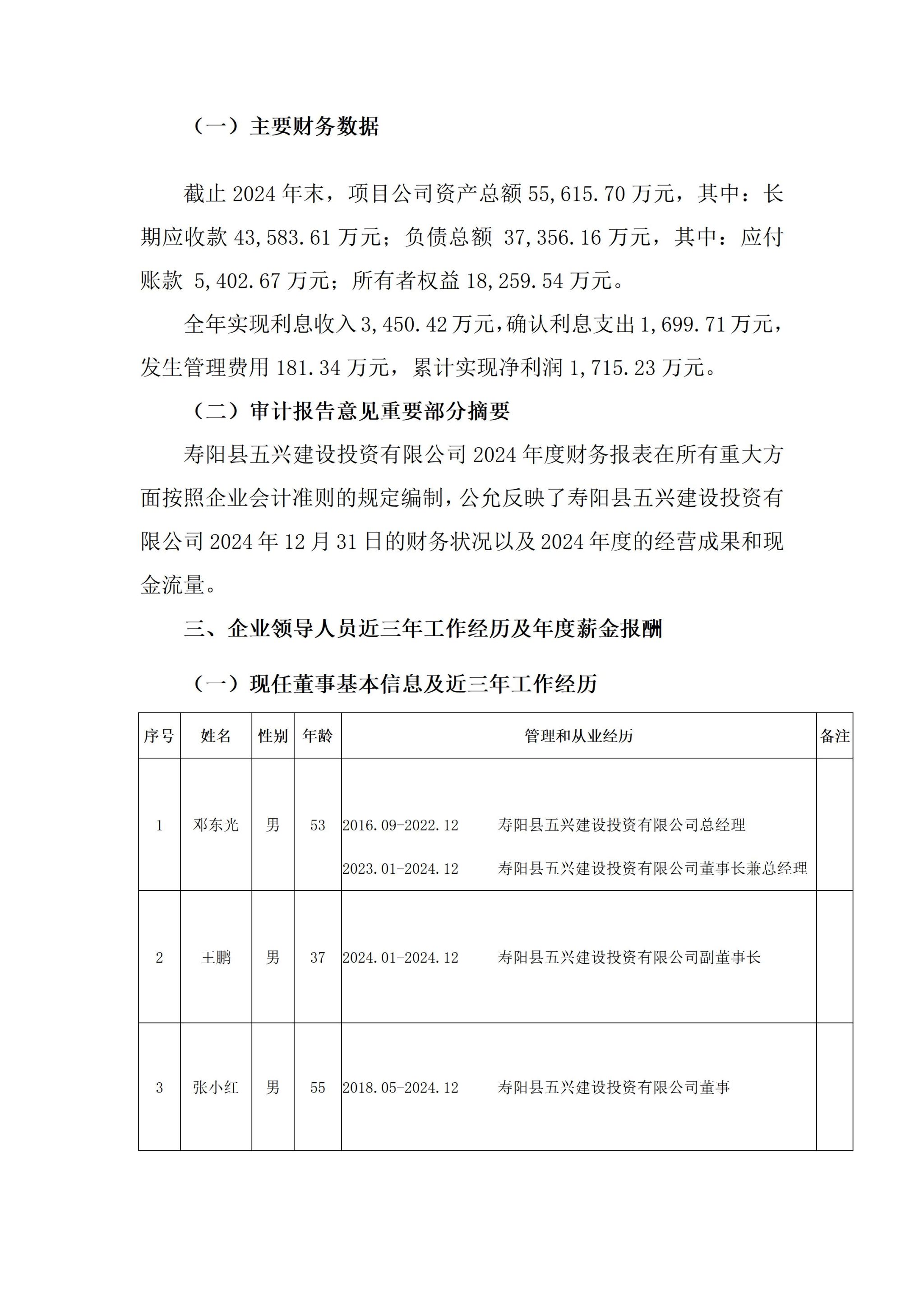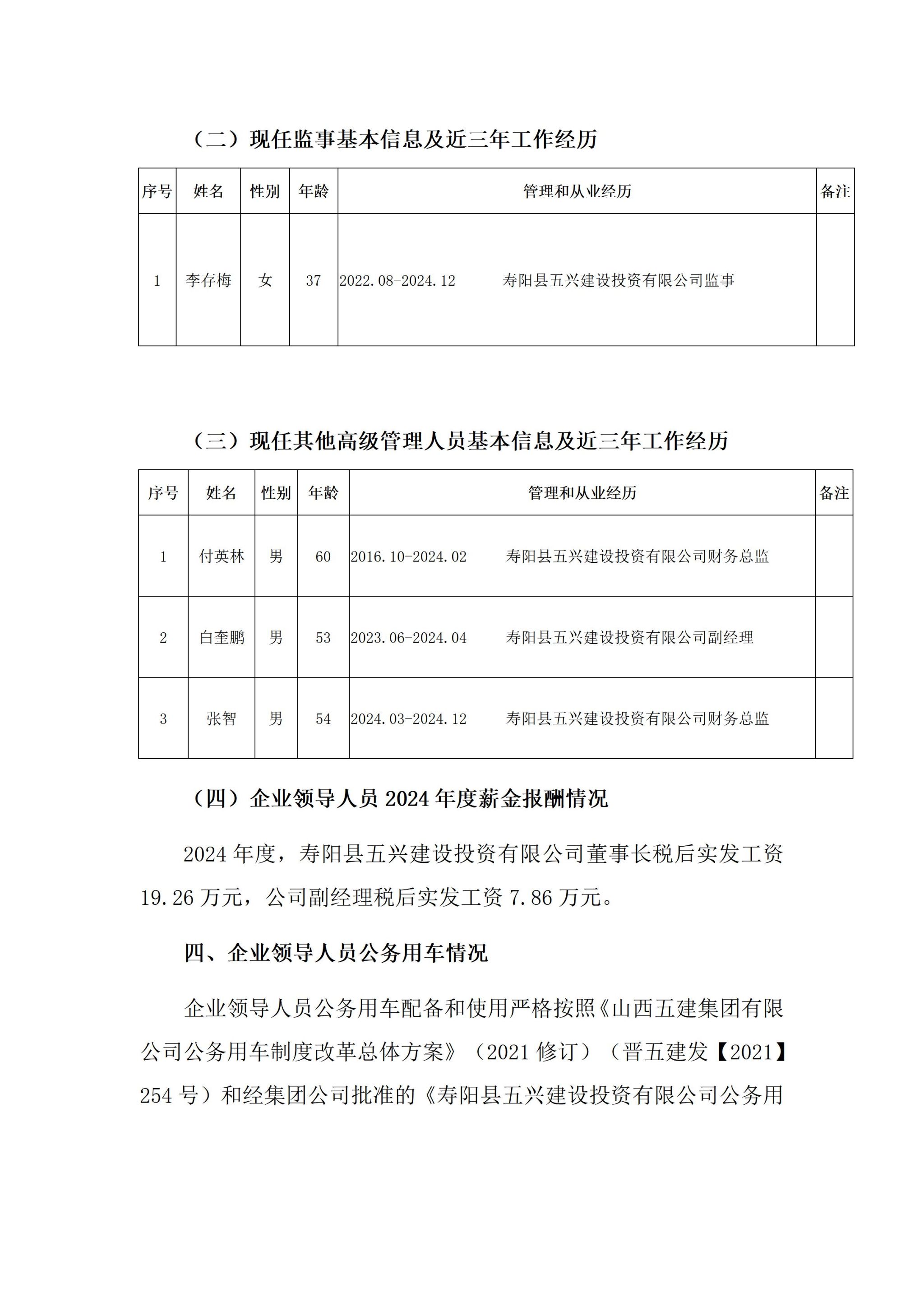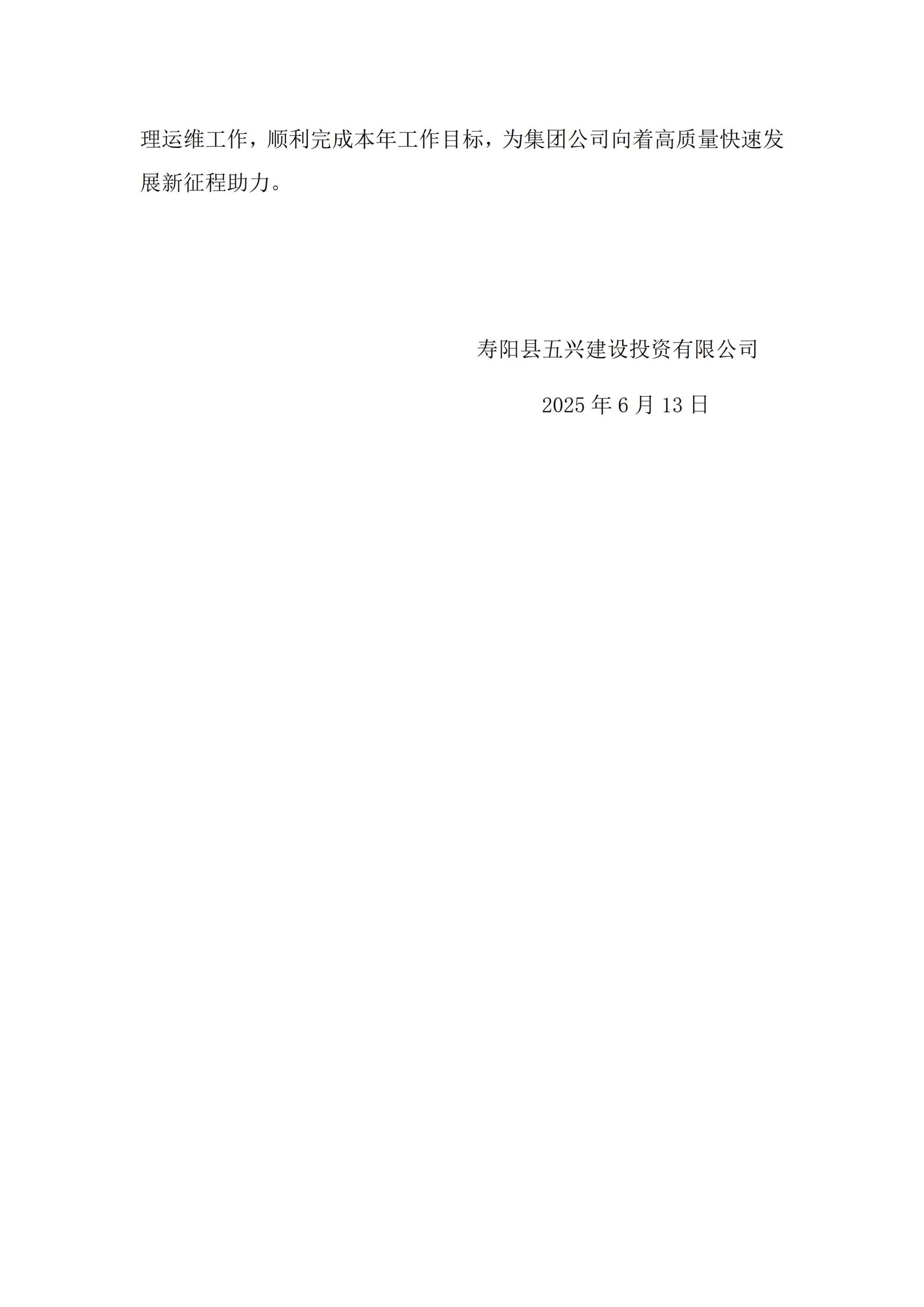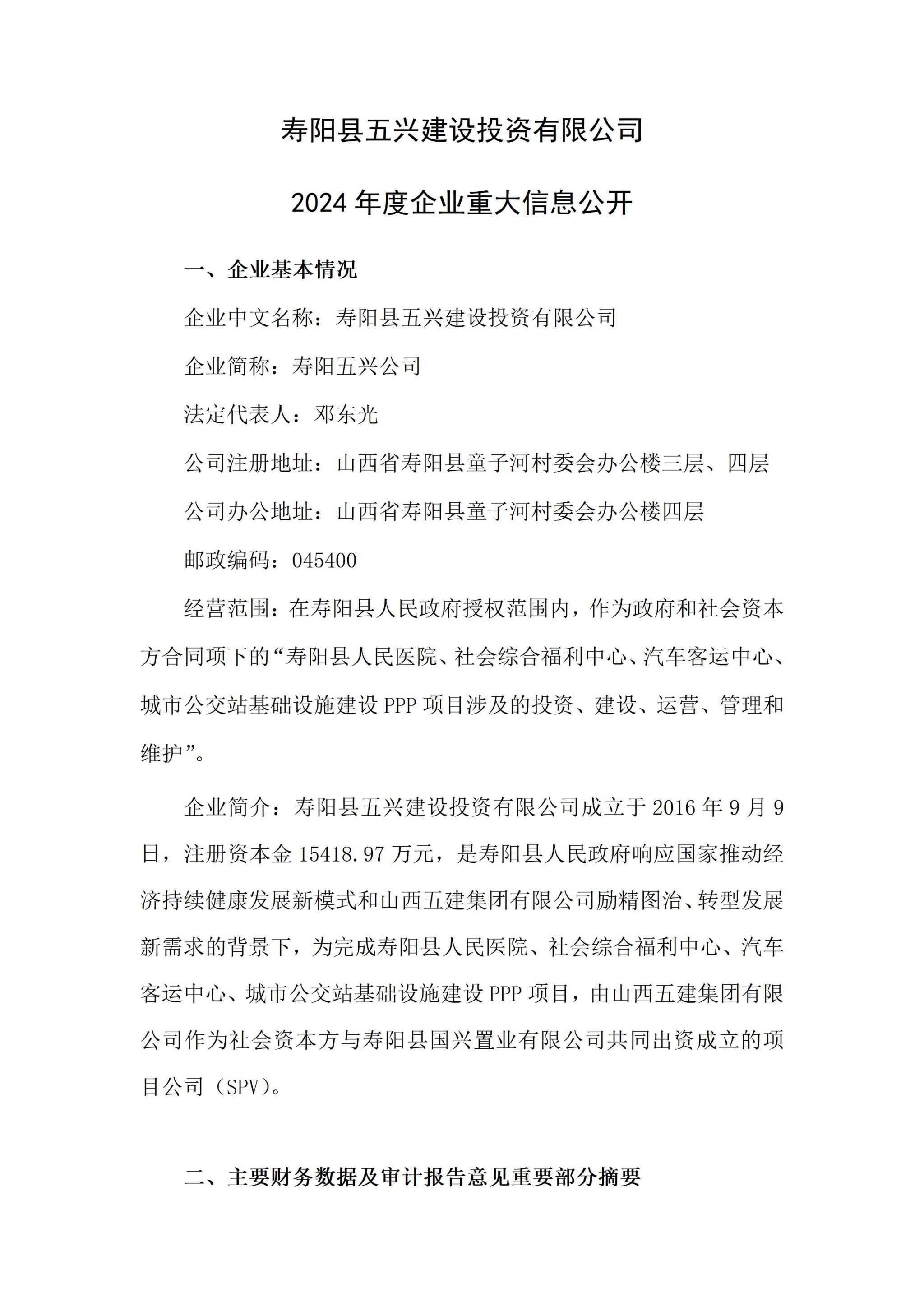 寿阳县五兴建设投资有限公司2024年度企业重大信息公开