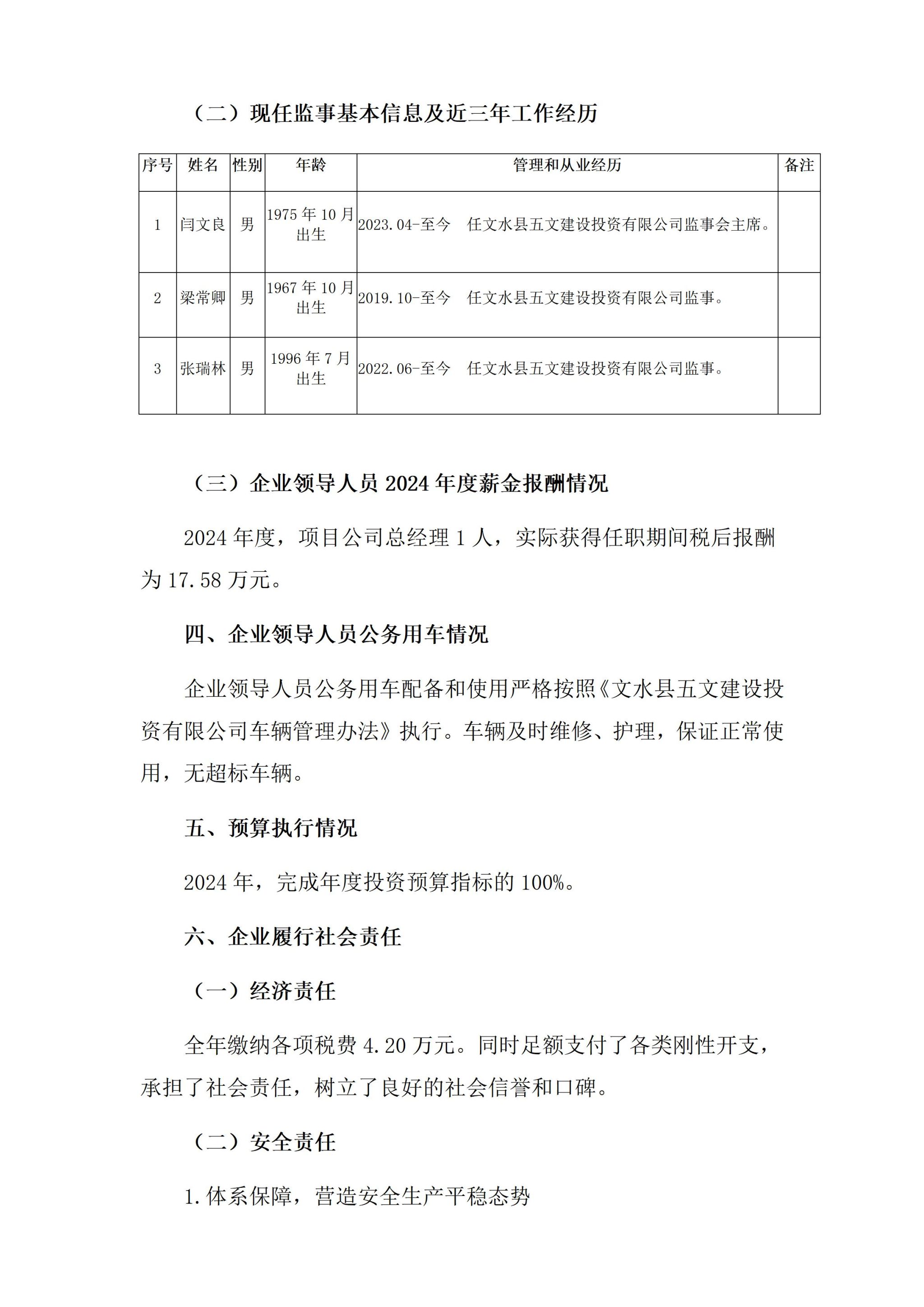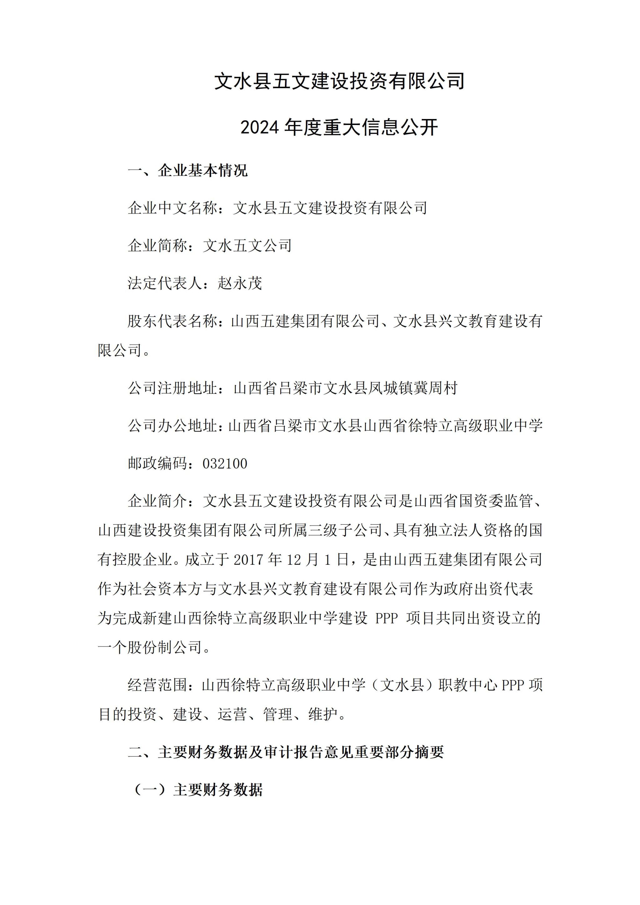 文水县五文建设投资有限公司2024年企业重大信息公开