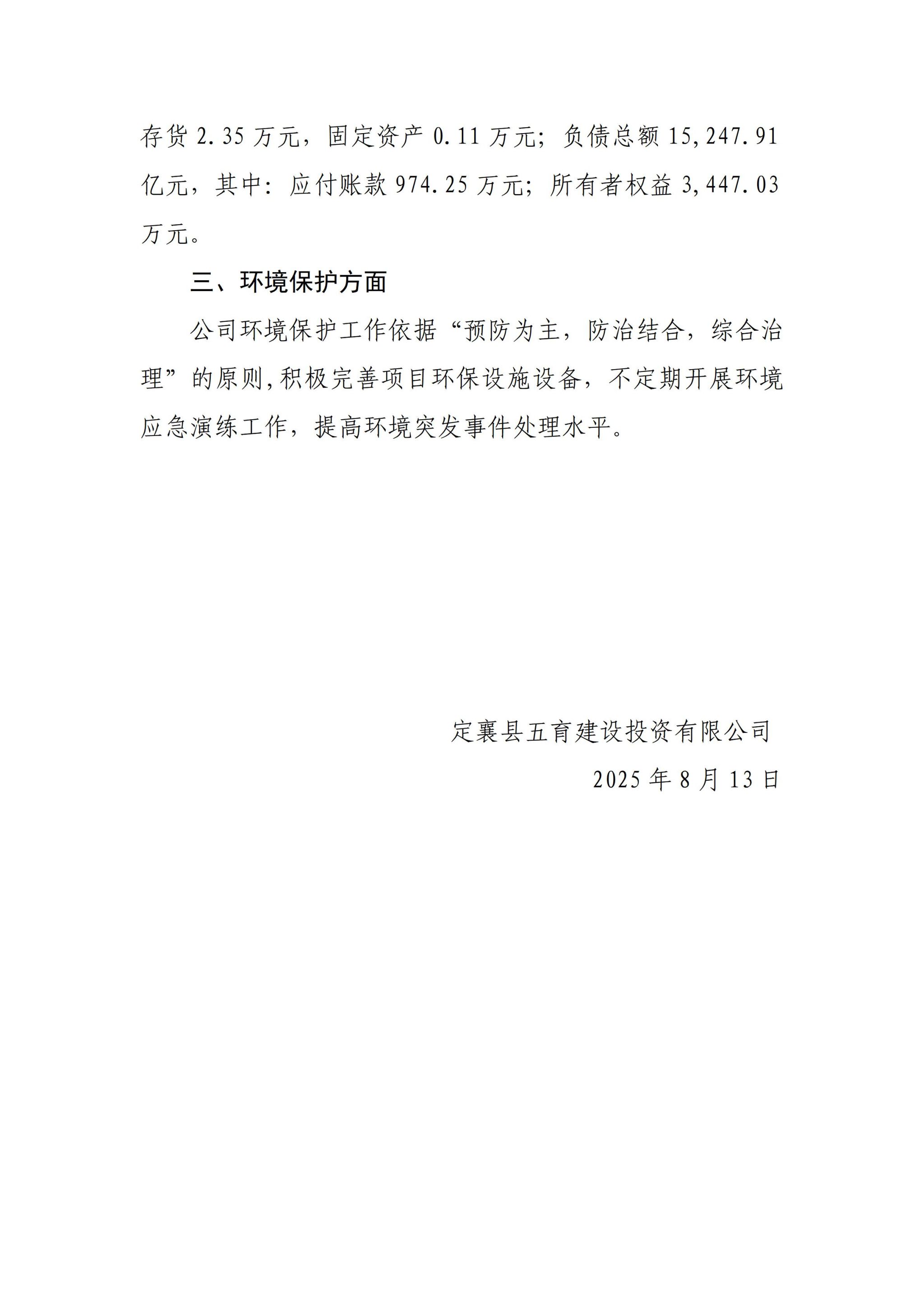 定襄县五育建设投资有限公司2025年二季度企业重大信息公开