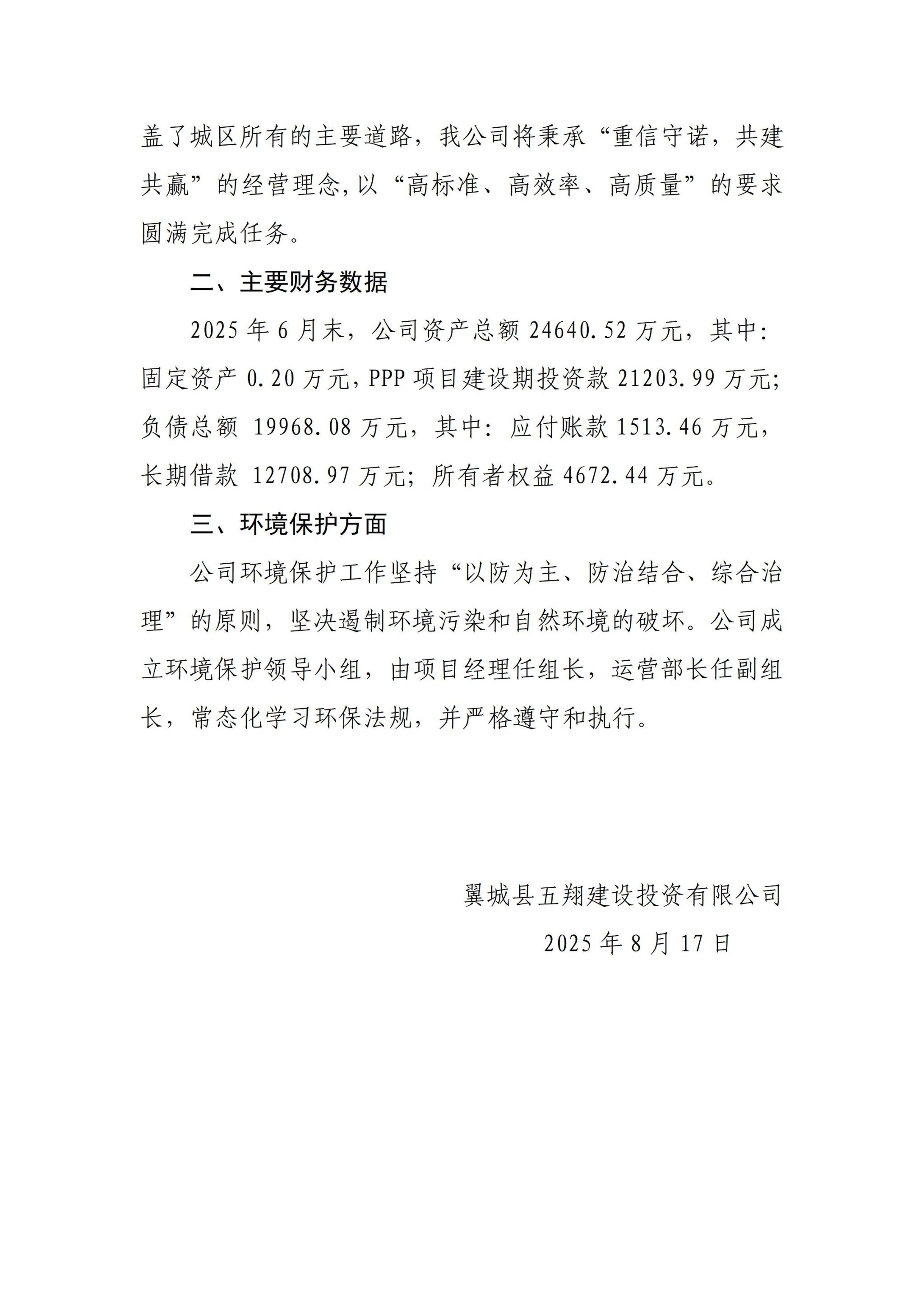 翼城县五翔建设投资有限公司2025年二季度企业重大信息公开
