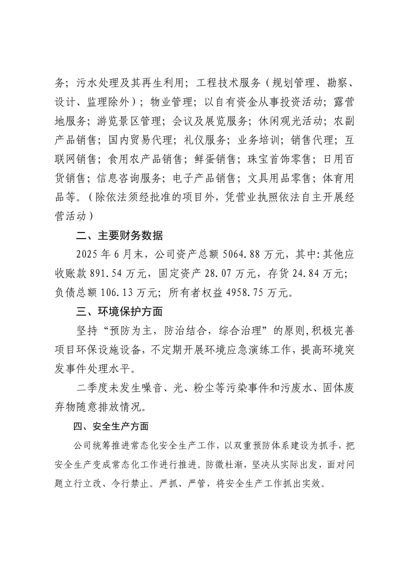 山西美丽乡村建设有限公司2025年二季度企业重大信息公开
