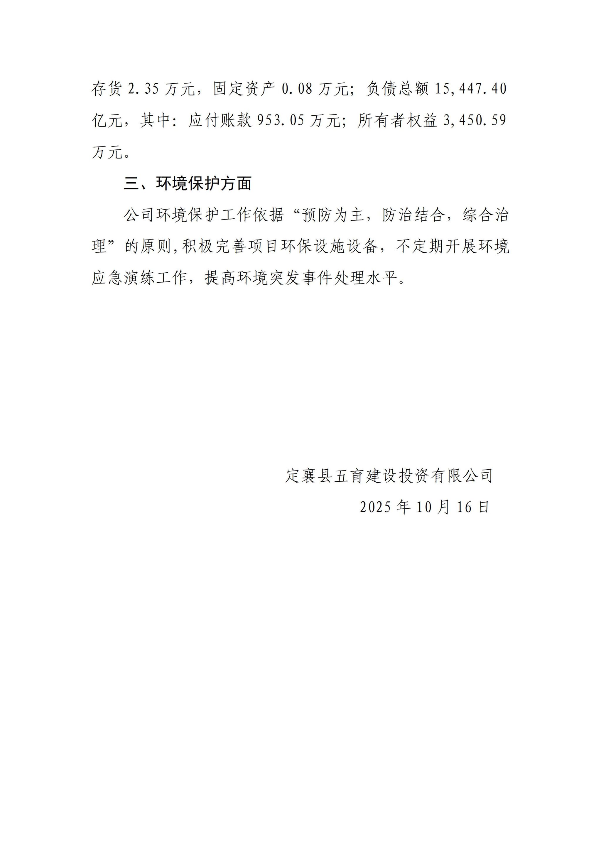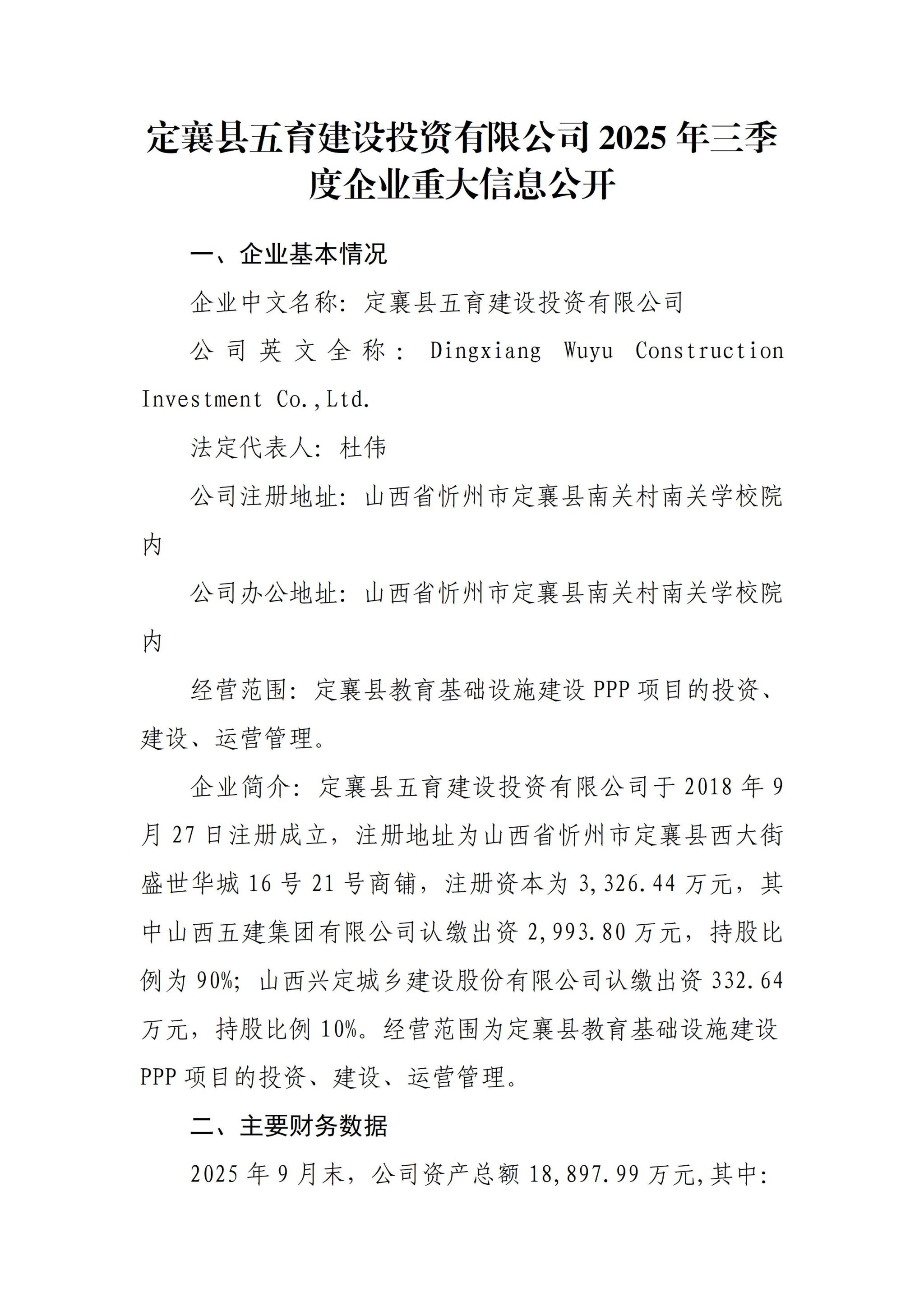 定襄县五育建设投资有限公司2025年三季度企业重大信息公开