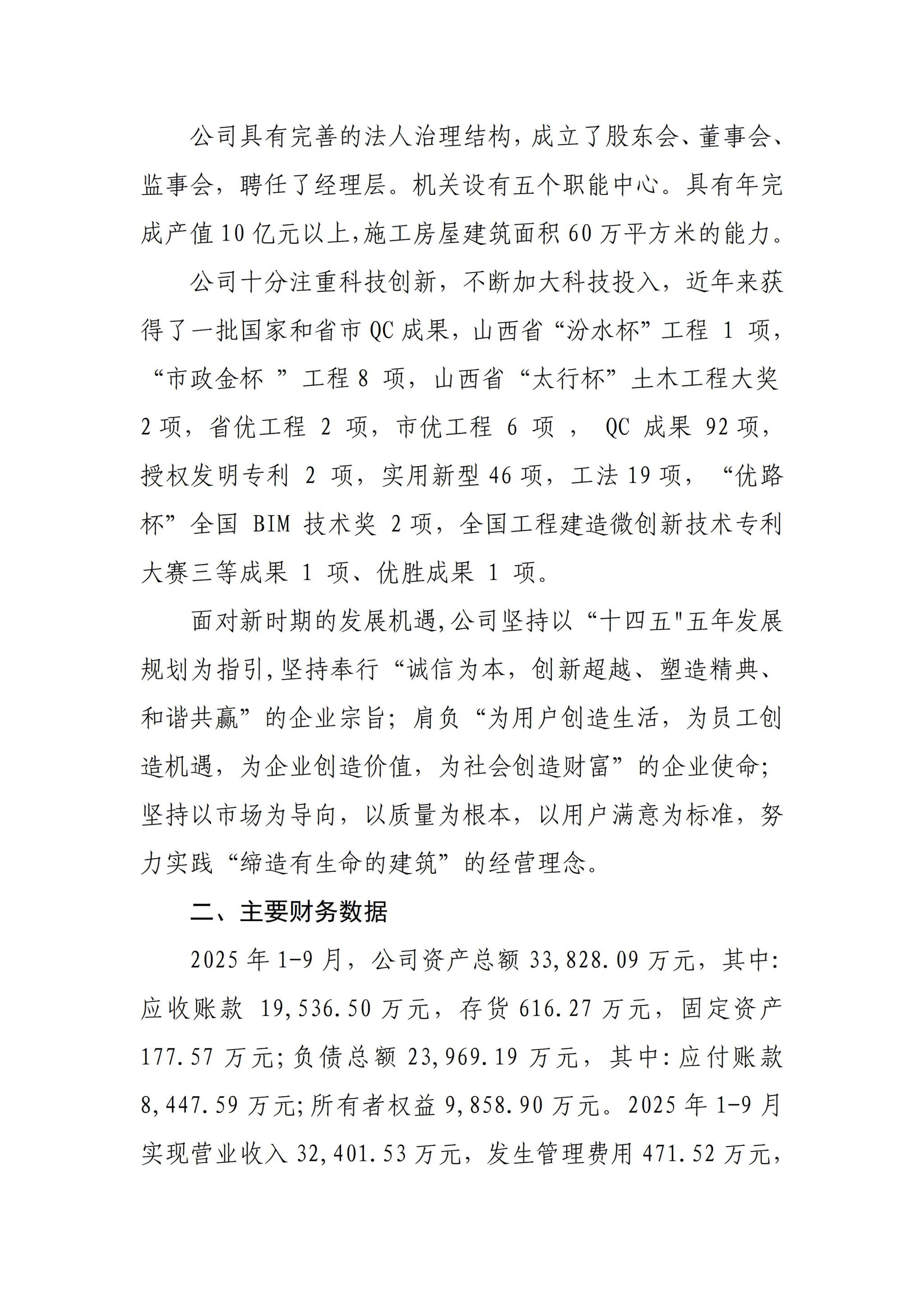 山西五辰建设发展有限公司2025年三季度企业重大信息公开