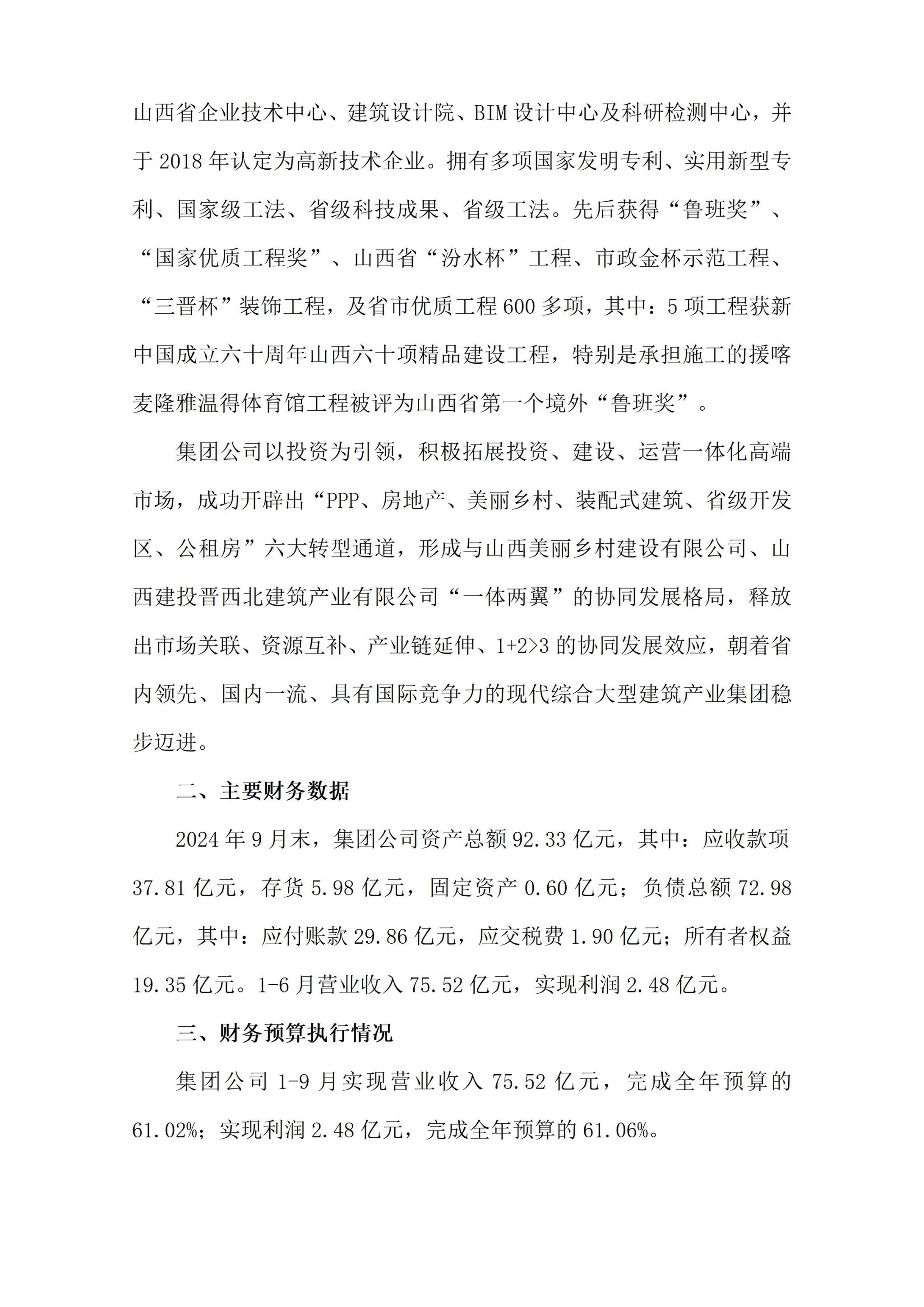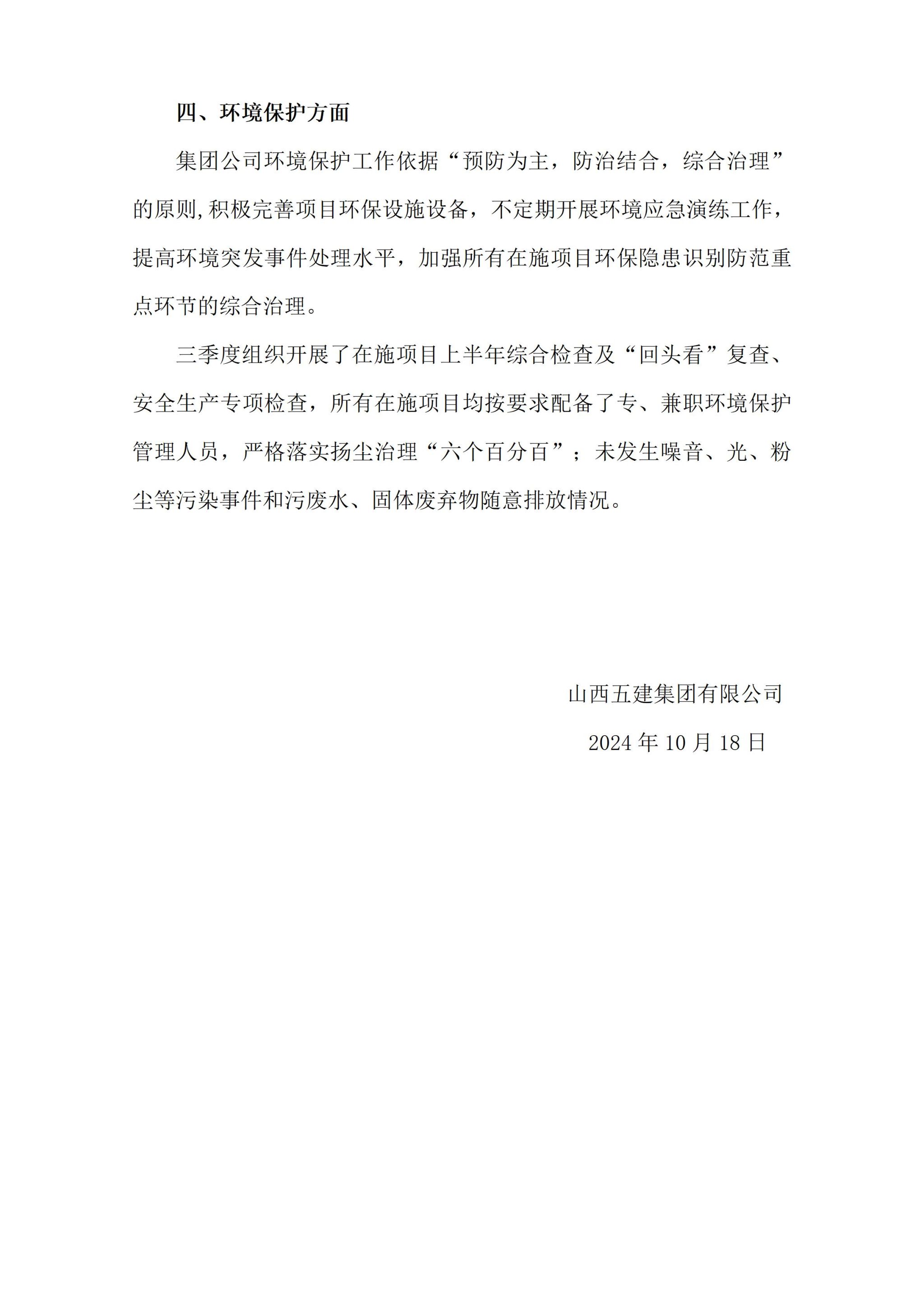 山西五辰建设发展有限公司2024年三季度企业重大信息公开